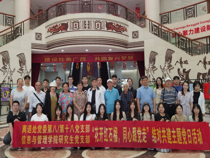 参观结束后,全体党员进行了深入的交流和讨论,分享参观心得。大家纷纷表示,通过参观领略了广西民族的独特魅力,加深了对中华民族多元一体的文化格局的认识,深刻认识到了各民族要像石榴籽一样紧紧抱在一起。